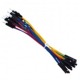 DescriptionCollection of male to male jumper wires-10 PiecesHandy for making wire harnesses or jumpering between headers on PCB's. These premium jumper wires are 6" (150mm) long and come in a 'strip' of 10.They have 0.1" male header contacts on either end and fit cleanly next to each other on standard-pitch 0.1" (2.54mm) ..